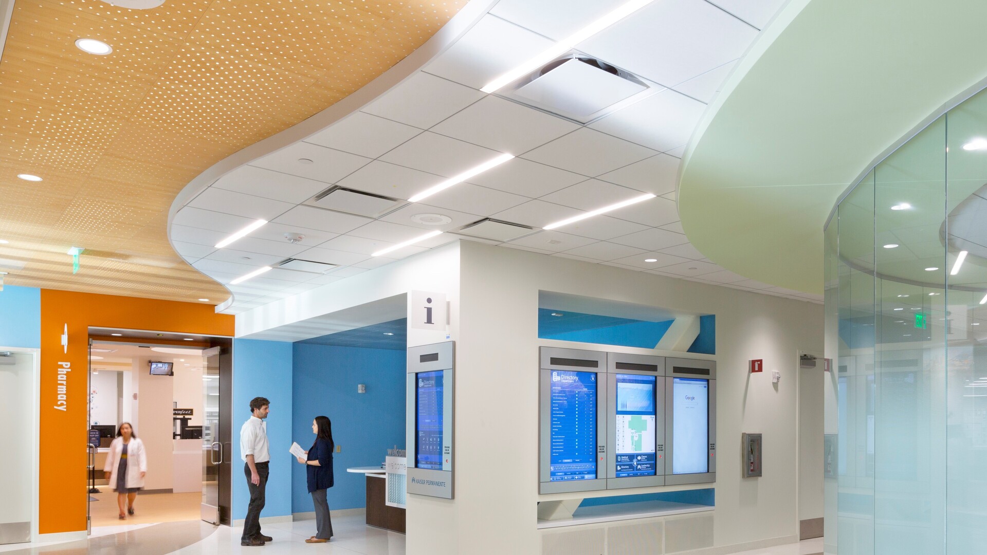 How does the color of decorative ceiling panels affect well-being?